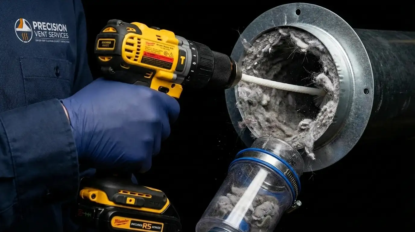 Our commercial-grade rotary brush system clears lint from the entire duct — from the dryer connection to the exterior cap. Nothing left behind.