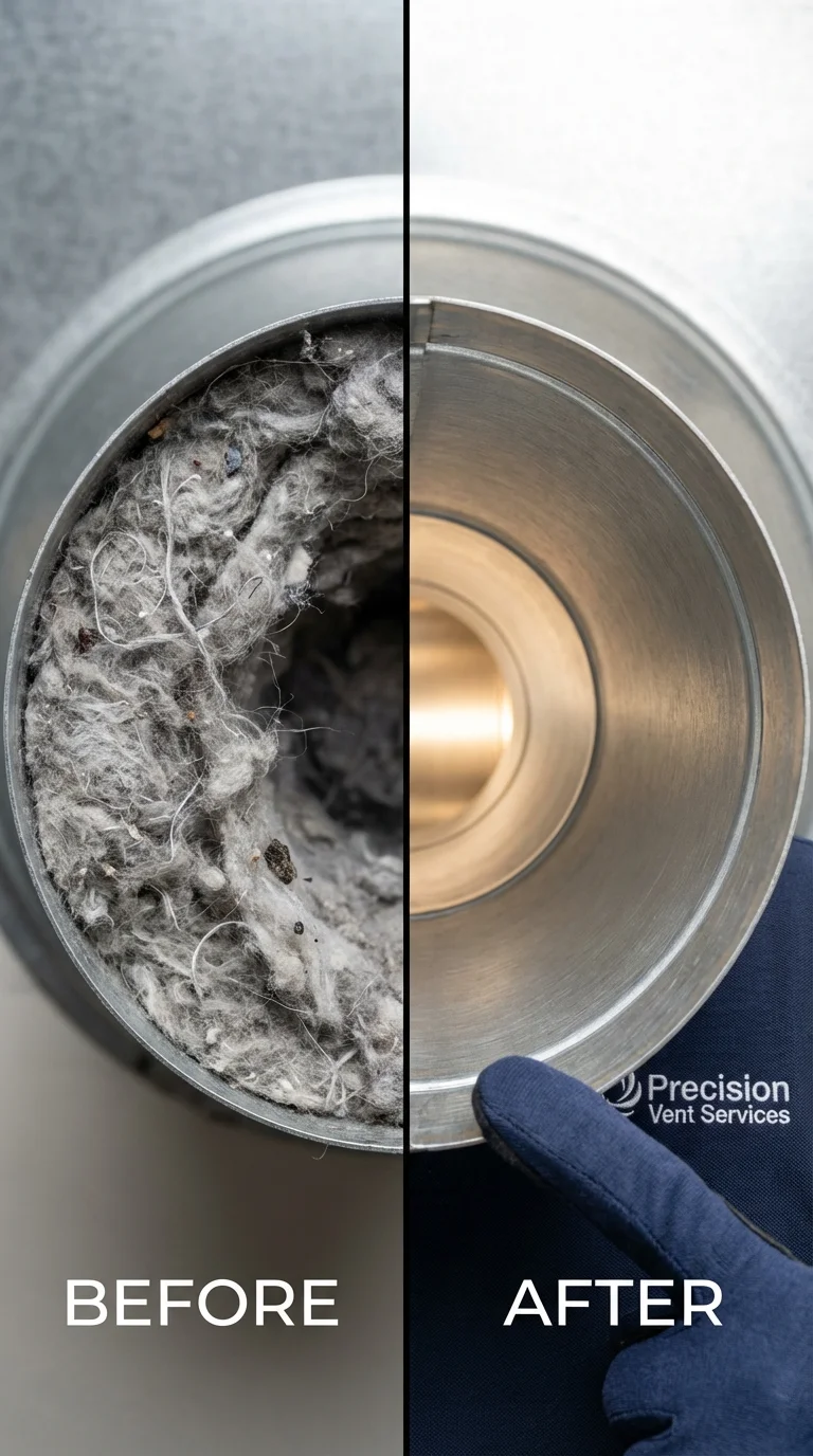 Our full-service dryer vent cleaning removes lint buildup from the entire duct line, restores proper airflow, and eliminates the fire hazard — with documented before and after results.
